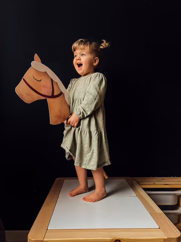 -konik na patyku do zabawy w zawody, wyścigi jeździeckie